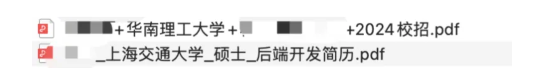 就上面简历的 PDF 简历的名字,就有很多问题,很多同学的 PDF 简历的名字就是「xxx 简历.pdf」,你看下这种命名方式,在人群中,hr 能关注到你吗?
