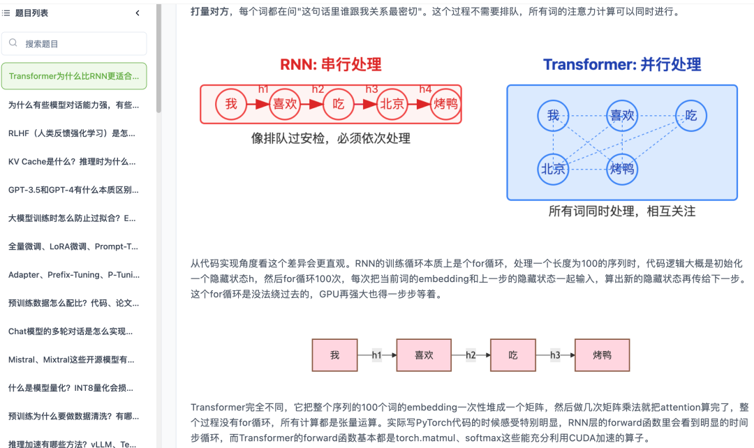 这70道题从"Self-Attention为什么要除以根号d_k"这种基础原理,到"ZeRO优化器的三个阶段分别优化了什么"这种工程实践,再到"Claude和GPT各自的优势是什么"这种模型对比,形成了完整的认知体系。