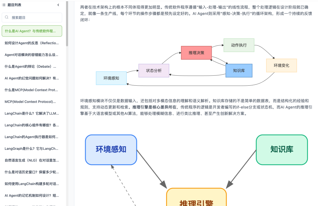 我们见过太多花大量时间投入到传统算法的同学,到了面试现场被问"ReAct模式和Reflexion有什么区别"时一脸茫然。也见过刷了半年LeetCode的开发同学,被问"LangChain的LCEL怎么用"时完全不知道从何说起。更糟糕的是,当你试图在网上找学习资料时,会发现大部分内容要么太浅(停留在API调用层面),要么太散(知识点之间没有连接),根本形成不了系统化的认知。