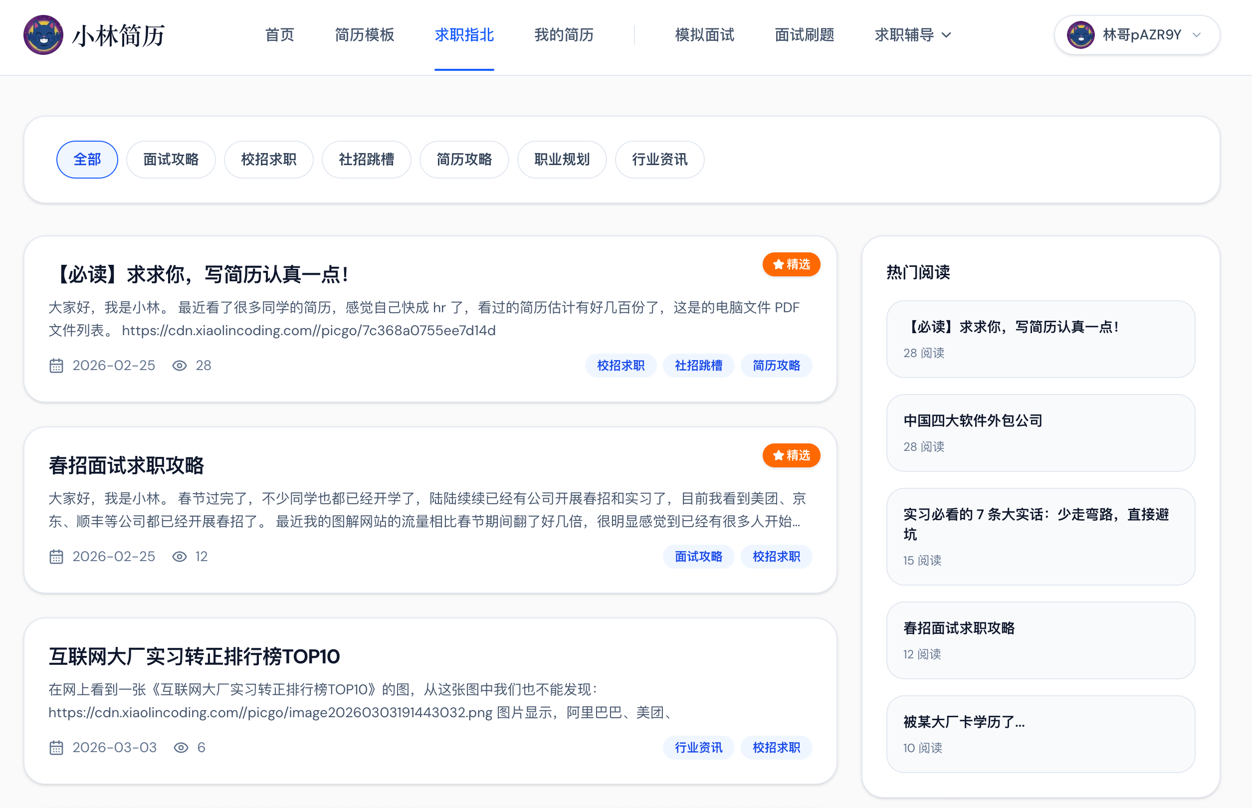 大家不仅能用网站写出高颜值的简历,还能顺手把这些经验贴给刷了,主打一个一站式解决求职焦虑,帮你最大程度抹平求职信息差!