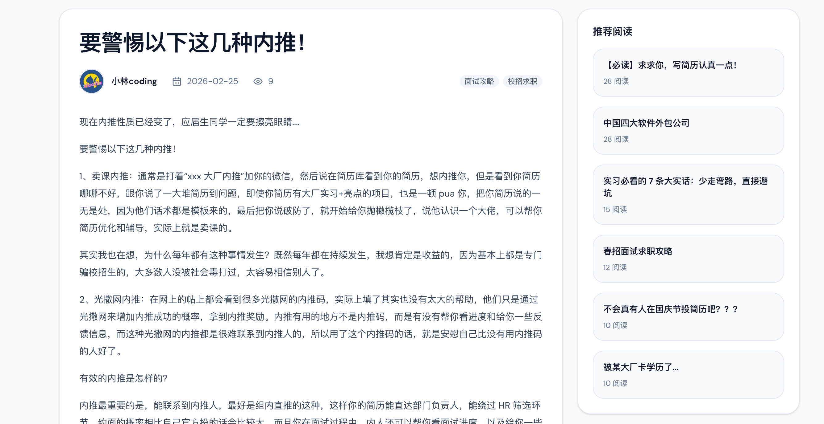 里面沉淀了我写过的大量求职干货、面试通关攻略,还有真实的互联网行业信息、防坑避雷指南和职业规划建议。